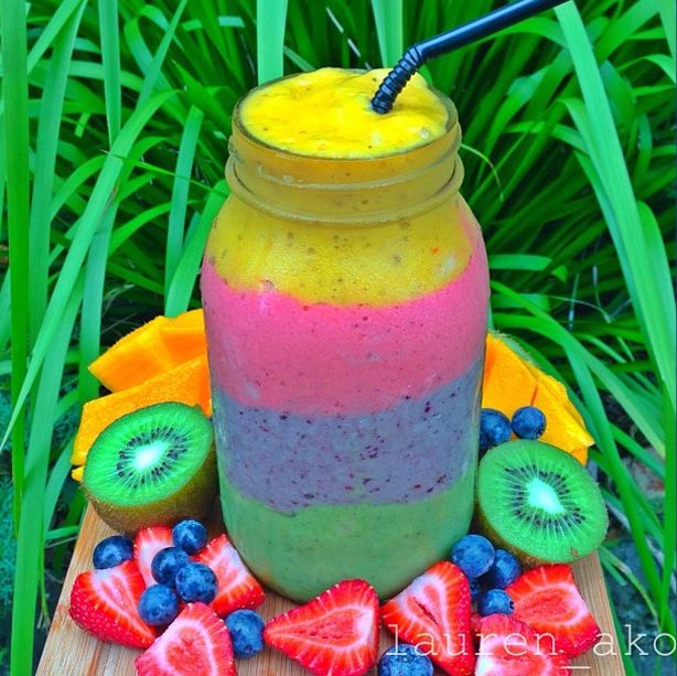 Een aantal weken geleden kwam ik ineens deze foto tegen op instagram. Ik keek er naar. Ik kon niet verder scrollen. Ik bleef kijken. Wat.. wat is dit voor heerlijkheid? De vrolijke kleuren, de leuke gigantische beker.. ik WIL DIT OOK! Ik besloot te zoeken naar de bron van deze foto en kwam al snel uit bij Instagram gebruiker Lauren_Ako. Zij blijkt vegan raw te eten en begint iedere dag met zo’n mega shake. Geweldig!