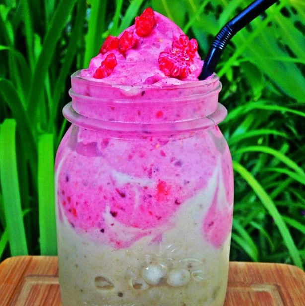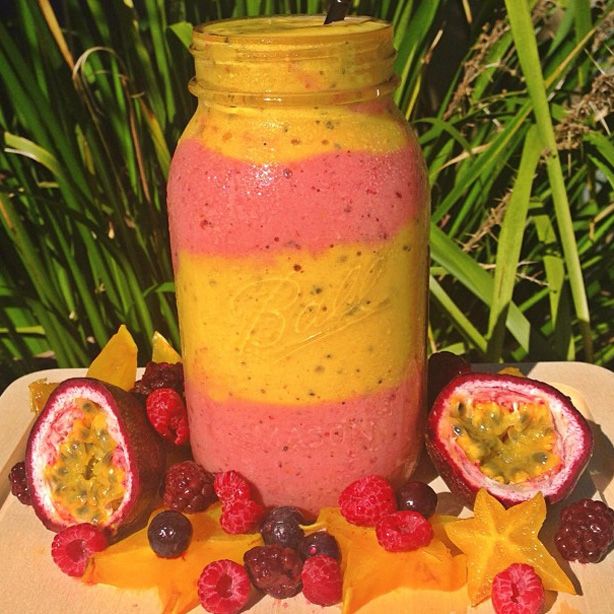 Ik vind het altijd reuze interessant om te zien wat anderen eten en haal er graag inspiratie uit. Ik ben zelf geen vegan maar vind het wel leuk om te spelen met vegan recepten. Toen ik op haar instagram account kwam wist ik niet wat ik zag. Tientallen foto’s van prachtige shake’s met de lekkerste ingrediĆ«nten.. wow! Zij drinkt dus iedere ochtend zo’n grote ‘pot’ met haar mixje op. Het principe is heel simpel: neem de ingrediĆ«nten, gooi ze (apart van elkaar, dus bijvoorbeeld kiwi en framboos apart) in de blender en ‘stapel’ het mooi in zo’n grote beker. Done! Het ziet er prachtig uit en is ontzettend gezond. Ik heb de leukste foto’s met recept er bij bewaard voor jullie. Komen ze!